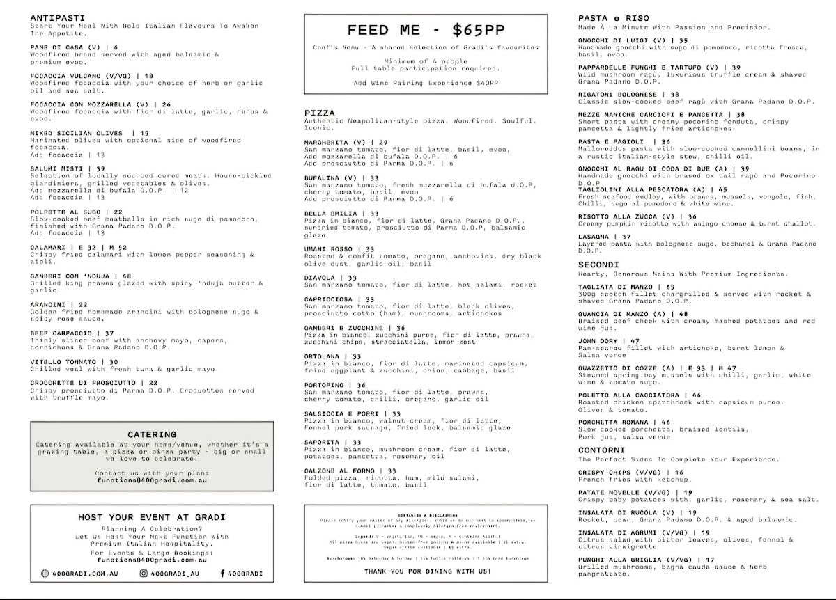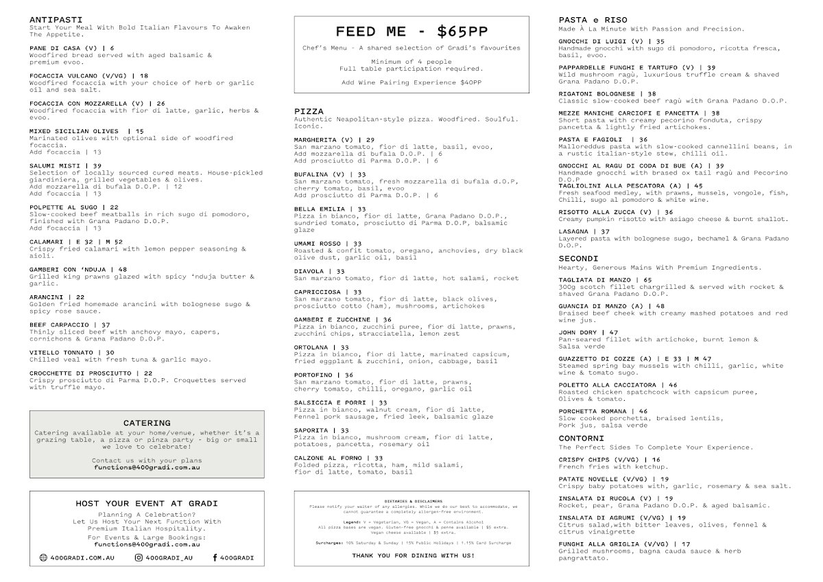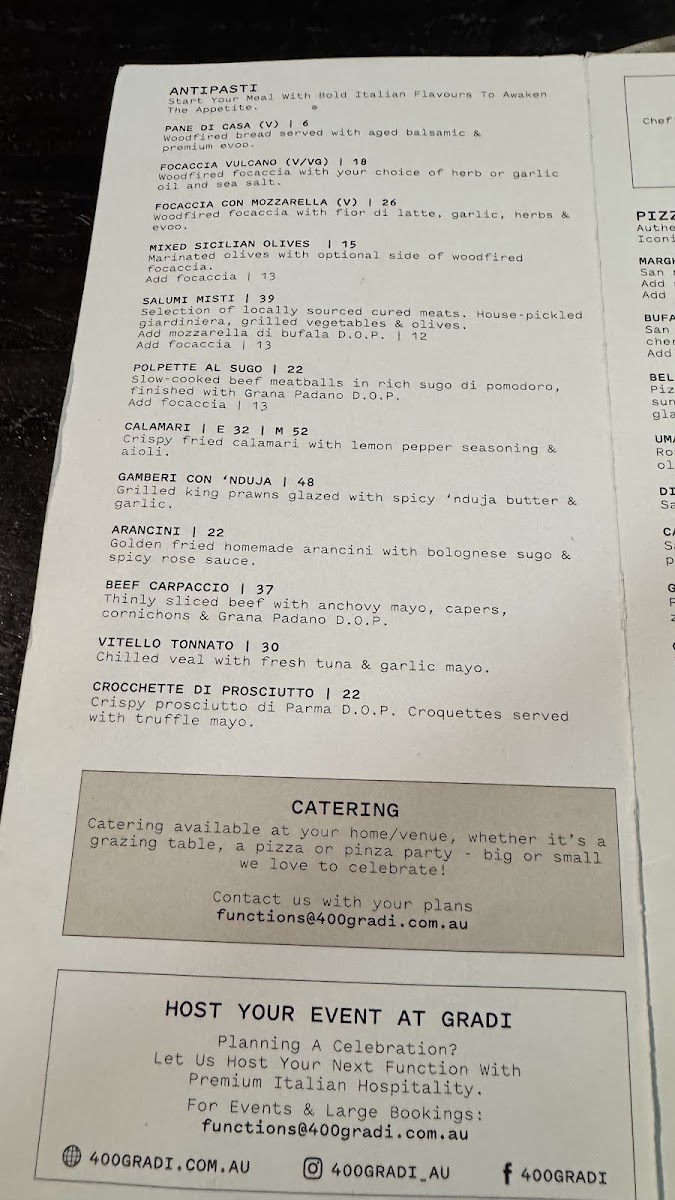 If you're looking for an unforgettable dining experience, the 400 Gradi - Brunswick Menu is bound to impress. Located at 99 Lygon St in Brunswick East, this spot brings an authentic taste of Italy right to your table. From the moment you step in, you'll be greeted with a warm, inviting atmosphere that's perfect for both casual meals and special occasions.